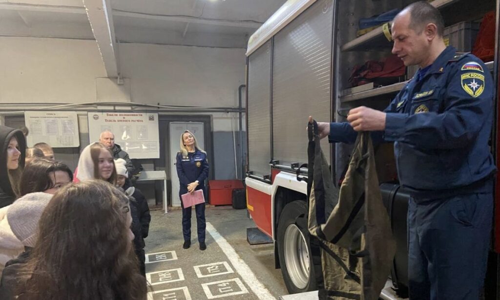 В ходе экскурсии Илья Зорькин, командир отделения рассказал гостям о своей работе, продемонстрировал мастер-класс по вязке узлов, рассказал о пожарно-техническом вооружении, боевой одежде и пожарных автомобилях, а также поделился интересными историями из практики.