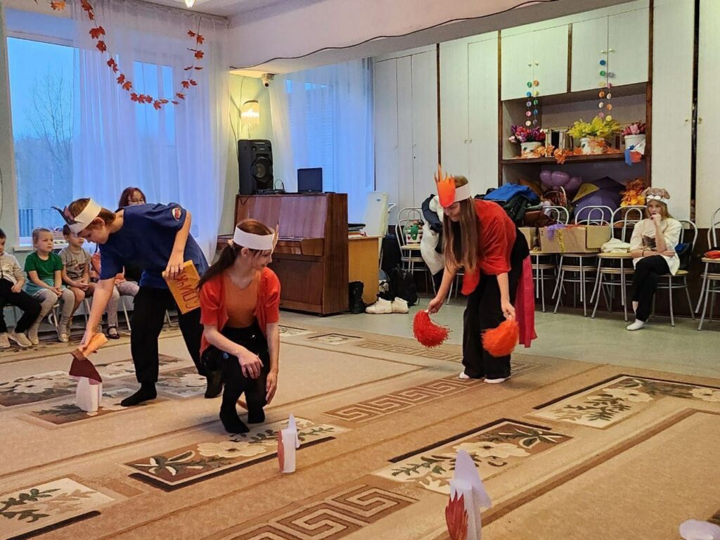 Главным героем сценки стал непослушный Лисёнок Огнехвостик, который решил поиграть со спичками. История показала малышам, к каким опасным последствиям может привести такая шалость.