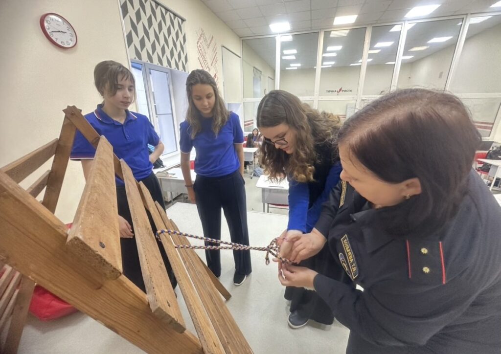 Занятие началось с практической части — отработки навыков вязания спасательных узлов. Ребята тренировались работать с верёвкой, осваивали основные узлы, которые применяются при спасательных работах, оттачивая точность и скорость выполнения.