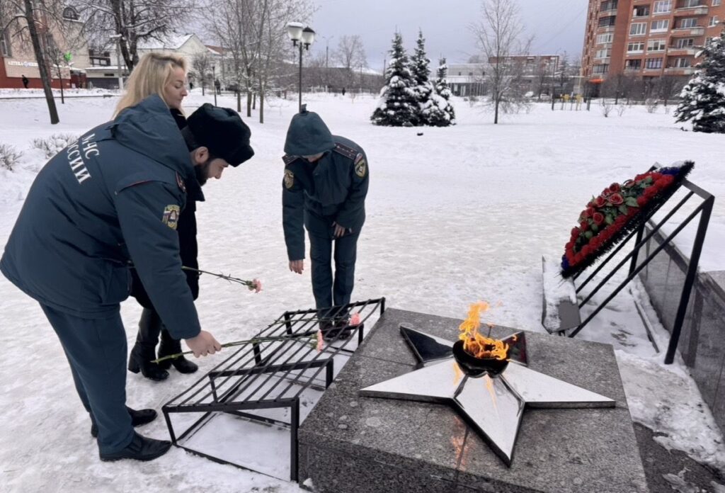 Сотрудники отдела надзорной деятельности и профилактической работы Тосненского района, 86 пожарно-спасательной части и местного отделения ВДПО ЛО возложили цветы у памятника Воину-Освободителю. У подножия памятника они почтили память павших минутой молчания.