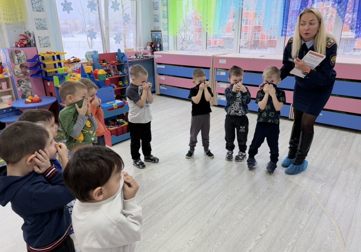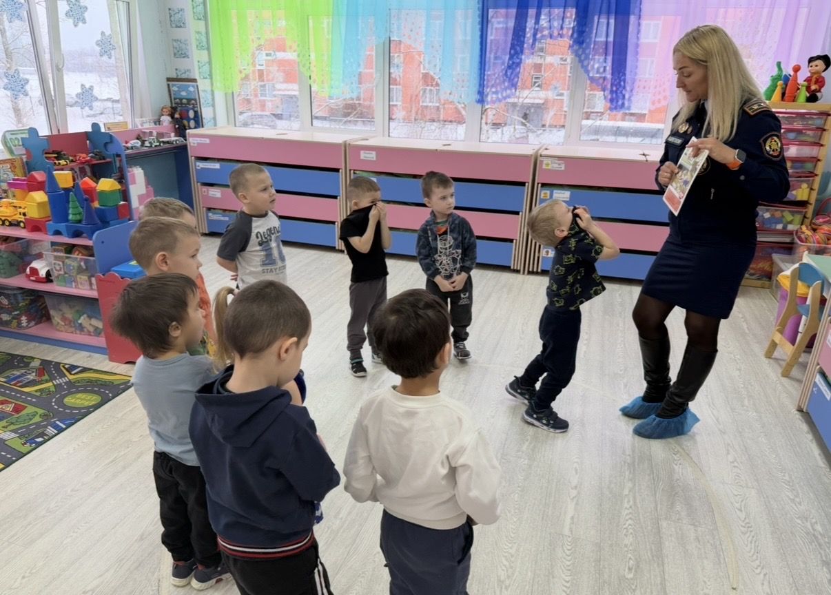 Отдельный акцент сделали на правильных действиях при пожаре. Ребятам напомнили, что в такой ситуации нельзя искать игрушки или прятаться. Самое главное — взять маму или папу за руку и как можно быстрее покинуть помещение.