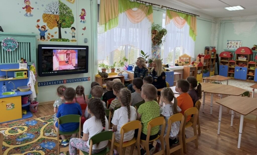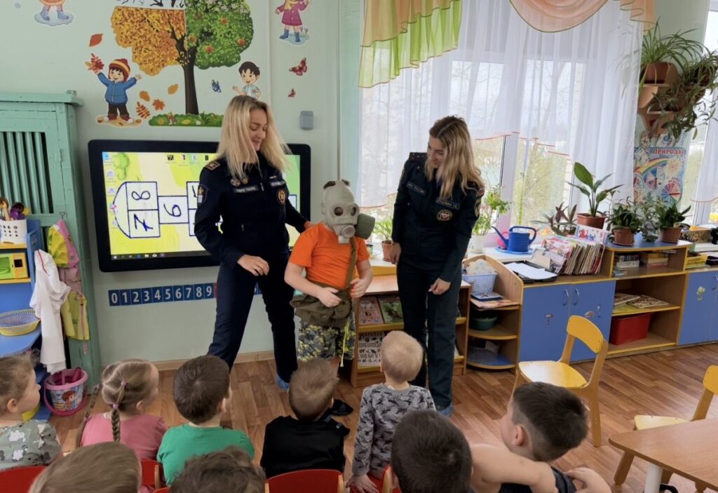 Ребятишки просмотрели тематический мультфильм на тему «Чрезвычайные ситуации», услышали сигнал воздушной опасности и «Внимание всем!», ребята узнали, что следует делать в таких ситуациях.