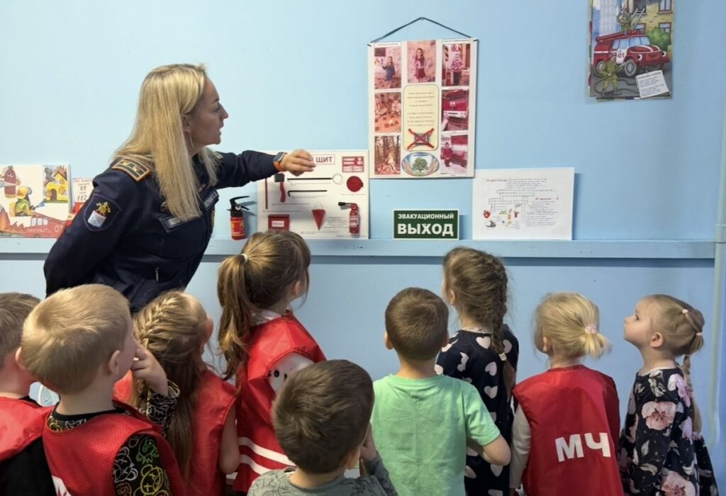 Кроме того, в рамках занятия воспитанникам продемонстрировали первичные средства пожаротушения. С помощью богатого реквизита дети увидели, чем можно тушить огонь, и узнали, как использовать эти средства в экстренных ситуациях.